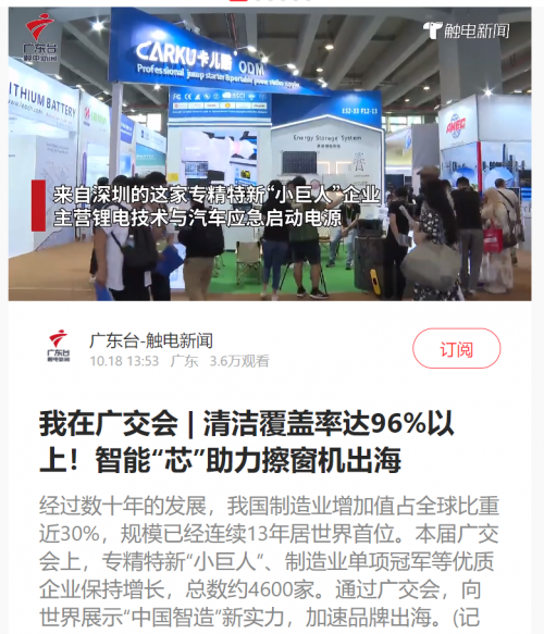 卡兒酷作為國 家級專精特新“小巨人”企業(yè)、國家高新技術(shù)企業(yè),在本次廣交會上受到新華社、中國國際電視臺(以下簡稱CGTN)、廣東電視臺、廣州日報、南方日報、新華網(wǎng)、新京報等多家知名媒體邀約采訪。
