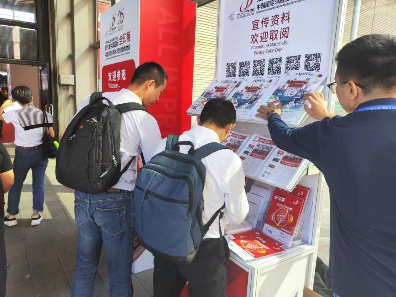 在第九屆全印展現(xiàn)場(chǎng),觀眾可以在入口大廳、主通道連廊輕松拿到中英文參觀指南、5個(gè)主題線路分類指南、每日“全印展通訊”等豐富的導(dǎo)覽資料,并到處可見官方“二維碼矩陣”,包括小程序、電子地圖、電子參觀指南、云端相冊(cè)、直播嘉年華、國(guó)際國(guó)內(nèi)官方社交媒體入口等,360度無(wú)死角導(dǎo)覽。