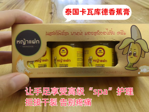 每逢秋冬季節(jié),腳上的皮膚就特別容易變得干燥,尤其是腳后跟這個地方。皮膚厚實,還會出現(xiàn)白色的裂紋,有時候甚至會裂開,露出紅色的肉。除了腳以外,我們對手的保養(yǎng)也是很重要的。小伙伴們經(jīng)常在洗潔精、洗衣液、油污的浸泡下,雙手又老又丑,這雙手根本伸不出去。前段時間表姐去了泰國旅游帶回了一瓶香蕉膏,它的效果可以用“立竿見影”來形容。使用起來更是水潤不粘膩,感覺一下就能被皮膚“咻”的吸收進去,變得有點水嫩光滑~還帶回去給同事用了下,她以為還是什么很貴的高檔貨!這款香蕉膏并不是什么貴婦級產(chǎn)品,但卻有著貴妃般體驗的——卡瓦庫德珍珠燕窩香蕉膏,當?shù)厮追Q“香蕉膏”或者“燕窩膏”。