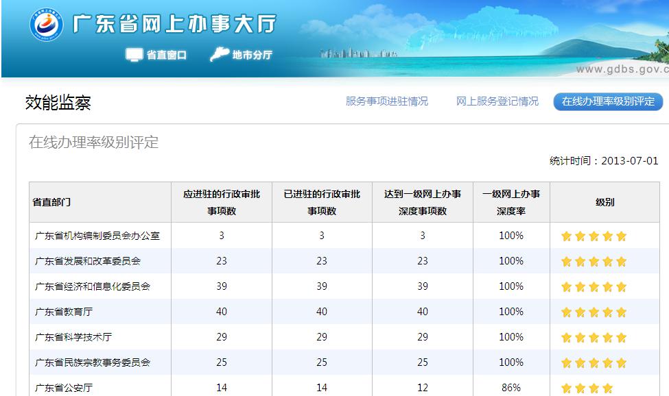廣東省網(wǎng)上辦事大廳運(yùn)用信息化手段創(chuàng)新政府管理與服務(wù),整合全省政府資源提高網(wǎng)上辦事效率,實(shí)現(xiàn)全省“一張網(wǎng)”。目前,45個(gè)省級(jí)單位、21個(gè)地級(jí)以上市和順德區(qū)的網(wǎng)上辦事窗口或分廳,與省網(wǎng)上辦事大廳實(shí)現(xiàn)連通。首批45個(gè)省級(jí)單位共有1106項(xiàng)服務(wù)事項(xiàng)順利進(jìn)駐省網(wǎng)上辦事大廳,516項(xiàng)辦事提供了在線(xiàn)申辦服務(wù)。21個(gè)地級(jí)以上市和順德區(qū)的18879項(xiàng)服務(wù)事項(xiàng)順利進(jìn)駐,其中有6217項(xiàng)辦事提供了在線(xiàn)申辦服務(wù),切實(shí)做到跨部門(mén)業(yè)務(wù)與服務(wù)的資源集成與整合;同時(shí),運(yùn)用了云計(jì)算理念、數(shù)據(jù)中心理念,推動(dòng)各類(lèi)行政審批、社會(huì)管理和服務(wù)事項(xiàng)實(shí)現(xiàn)網(wǎng)上“一站式辦理、一條龍服務(wù)”,首創(chuàng)辦事人只要根據(jù)需求和條件對(duì)號(hào)入座就能辦理業(yè)務(wù),將8小時(shí)政府變?yōu)?4小時(shí)政府,白天晚上均可網(wǎng)上申辦。