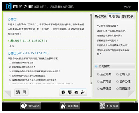 ?。?)行政服務(wù)中心自助化。通過(guò)物聯(lián)網(wǎng)、互聯(lián)網(wǎng)等先進(jìn)信息技術(shù),將行政服務(wù)大廳、網(wǎng)上、社區(qū)、自助終端、手機(jī)等融合在一起,實(shí)現(xiàn)數(shù)據(jù)資料共享,為公眾提供最為便捷的服務(wù)。通過(guò)24小時(shí)自助行政服務(wù)系統(tǒng),自助終端集觸摸屏、打印、掃描、射頻于一體,通過(guò)佛山市社會(huì)保障(市民)卡感應(yīng)識(shí)別,居民可在社區(qū)自助終端上進(jìn)行辦件進(jìn)展查詢、辦事預(yù)約、自助填報(bào)等事項(xiàng),并通過(guò)藍(lán)牙將相關(guān)信息發(fā)送到手機(jī)。