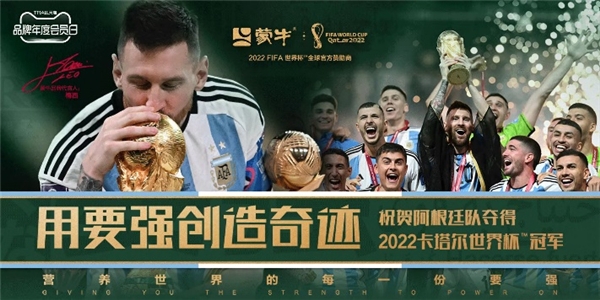 2022年卡塔爾足球世界杯于2022年12月18日在卡塔爾落下帷幕,這一場(chǎng)被譽(yù)為球王之戰(zhàn)的決賽過后,新球王梅西加冕聚焦全球目光,而遠(yuǎn)在中國(guó)的蒙牛似乎才是真正的贏家。世界杯期間,關(guān)于蒙牛乳業(yè)的熱搜接連不斷,消費(fèi)者在各類新興觸媒和平臺(tái)內(nèi),也主動(dòng)和被動(dòng)地持續(xù)參與進(jìn)這次世界杯營(yíng)銷大戰(zhàn)役中。