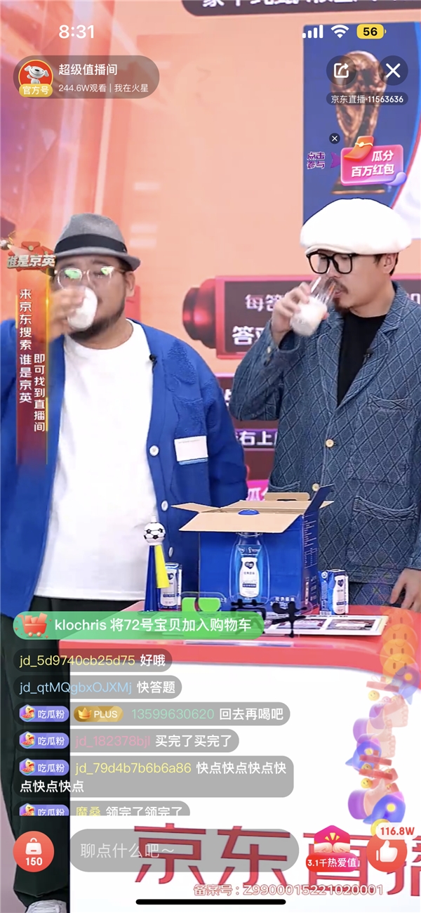 以京東平臺(tái)的【京英直播答題賽】為例,直播現(xiàn)場(chǎng)利用內(nèi)容共創(chuàng)在場(chǎng)域內(nèi)引發(fā)共振,邀請(qǐng)到了肉食動(dòng)物組合進(jìn)行現(xiàn)場(chǎng)互動(dòng),該組合今年話題度和年輕群體滲透度均表現(xiàn)很出色。蒙牛在世界杯鏈接的構(gòu)建上,攜手平臺(tái)共創(chuàng)構(gòu)建話題性場(chǎng)景,蒙牛0成本撬動(dòng)平臺(tái)的戰(zhàn)略資源,利用自己世界杯資源與平臺(tái)共創(chuàng),進(jìn)行生態(tài)打通。