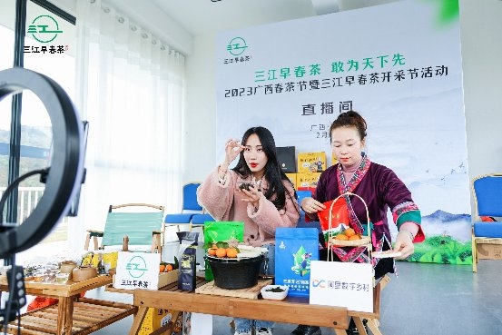 春雨催新芽,品茗正當(dāng)時(shí)。開(kāi)采節(jié)活動(dòng)當(dāng)天,在三江縣馬灣茶園主會(huì)場(chǎng)以及布央茶園分會(huì)場(chǎng),由阿里巴巴邀請(qǐng)的6個(gè)淘寶直播網(wǎng)紅正在直播間為三江本地商家吆喝新茶?!皣鸂t煮茶”、“露營(yíng)喝茶”……形式多樣的直播活動(dòng)與春茶節(jié)啟動(dòng)儀式同步進(jìn)行,共吸引百萬(wàn)人線上觀看。