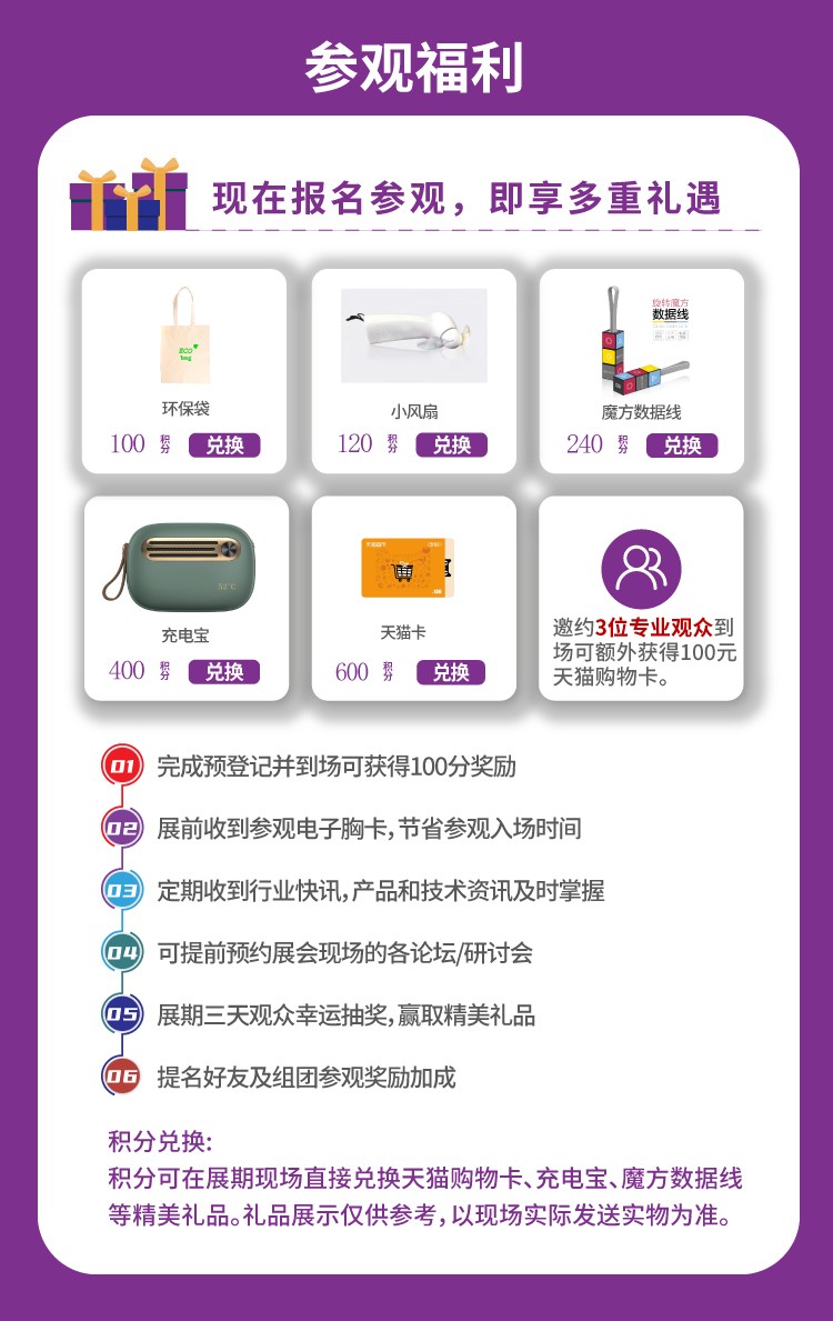 注:積分可在展期現(xiàn)場直接兌換天貓購物卡、充電寶等精美禮品。