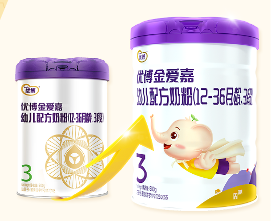 這次優(yōu)博金愛(ài)嘉全新的包裝也可顯示出全面升級(jí)的決心,新包裝延續(xù)優(yōu)博優(yōu)雅紫色的主色調(diào),以亮白色為底色,搭配金色點(diǎn)綴,色彩對(duì)比鮮艷明麗,給人以活潑、明快的視覺(jué)感受。罐身小飛象的形象可愛(ài)又快樂(lè),充滿(mǎn)童趣,貼合孕嬰主題,為消費(fèi)者帶來(lái)賞心悅目的好心情。