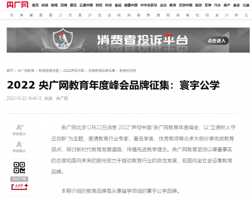 我司也在2022年成功入選中央電視臺(tái)央廣網(wǎng)教育年度峰會(huì)征集品牌,也在騰訊新聞教育年度高峰論壇上成功獲得了“2022年度留學(xué)服務(wù)知名品牌”的稱號(hào)。更是在2023年在全國企業(yè)信用公司平臺(tái)上被評(píng)估為AAA級(jí)信用企業(yè)。