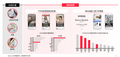 比如,用戶將全身需求細分,追求從頭到腳的精致;更追求悅己的感受,比如在身體護理中,作為悅己體驗,「香味」成為身體護理主要訴求之一,在《趨勢報告》中,2022年站內(nèi)身體護理搜索需求下,「香味」超越「保濕」成為沐浴露的首要訴求;同時,對場景化需求熱度也不斷攀升,白天關注身體每個細節(jié)的好狀態(tài),晚間則需要沉浸式護理來解壓。