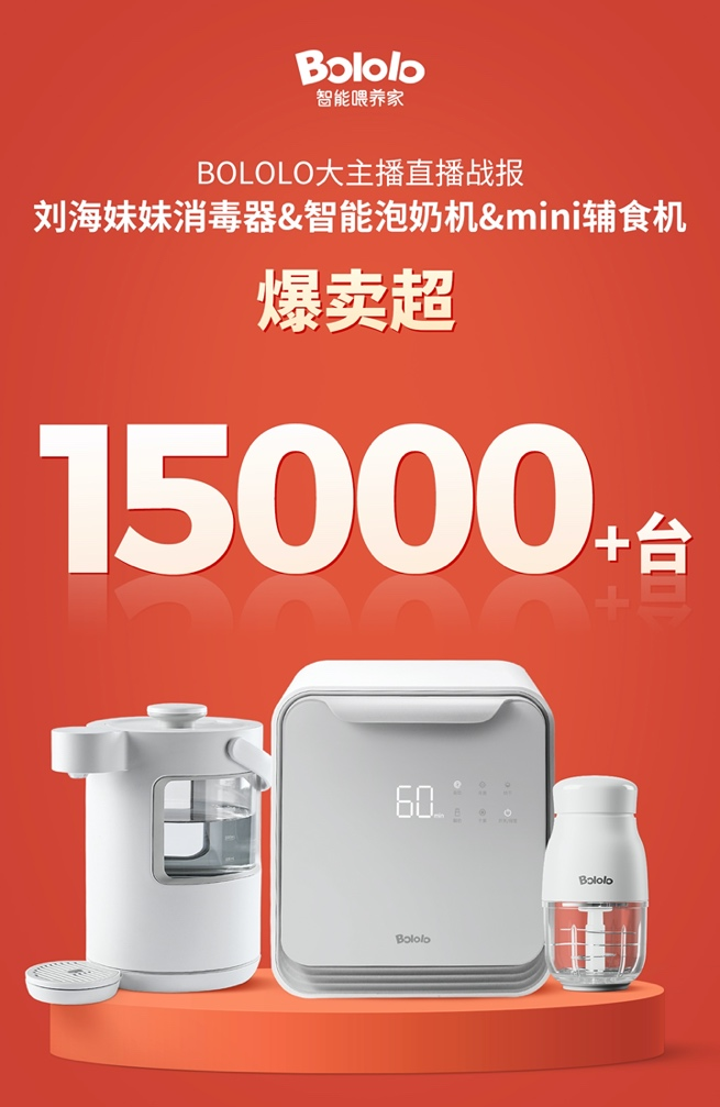 在近日李佳琦母嬰節(jié)和親子節(jié)專(zhuān)場(chǎng)中,BOLOLO連續(xù)霸屏爆品榜,劉海妹妹紫外線消毒器、智能泡奶機(jī)、mini輔食機(jī)3款單品熱賣(mài)15000+臺(tái),高居不下的熱度也讓這個(gè)專(zhuān)注智能喂養(yǎng)的品牌又一次聚焦起大眾視野,掀起一輪新浪潮。