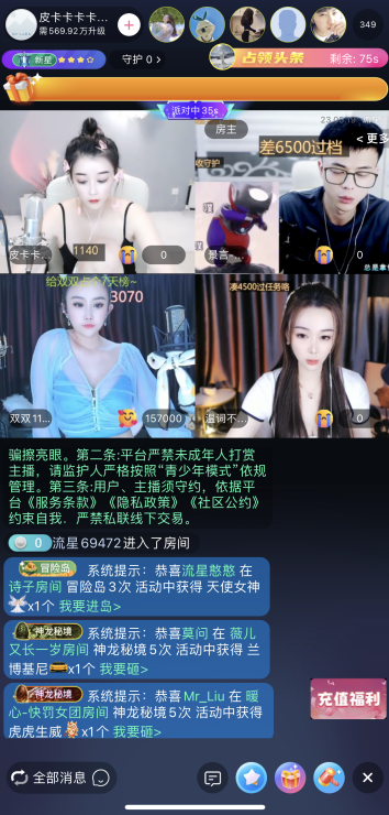 流星直播打造全新趣味主播PK,不僅保留了傳統(tǒng)的兩人對決形式,還增加了多人多屏PK互動模式。新模式增加了更多的游戲玩法、趣味挑戰(zhàn)和獎勵機(jī)制,使得PK過程更加豐富多樣,讓PK更加有趣,獲得更多快樂!