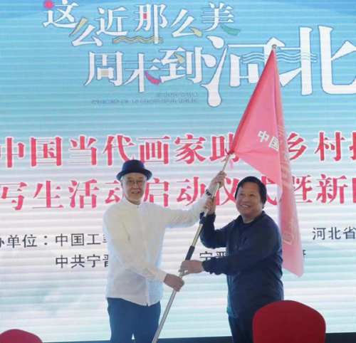 啟動(dòng)儀式最后,中國(guó)工筆畫學(xué)會(huì)會(huì)長(zhǎng)陳孟昕向第 一批寫生團(tuán)領(lǐng)隊(duì)徐惠泉授旗,并宣布此次采風(fēng)寫生活動(dòng)正式開始,參加第 一批寫生的近20位人物畫家在陳孟昕會(huì)長(zhǎng)、領(lǐng)隊(duì)徐惠泉帶領(lǐng)下直接奔赴雄安新區(qū)開始采風(fēng)之旅。本次采風(fēng)寫生活動(dòng)計(jì)劃于5月22日到7月3日邀請(qǐng)全國(guó)的優(yōu)秀畫家分產(chǎn)業(yè)人物、山水、花鳥三個(gè)批次,分別深入河北雄安新區(qū)、太行山區(qū)、邢臺(tái)寧晉城鎮(zhèn)、鄉(xiāng)村、企業(yè)、作坊、自然山水等地進(jìn)行采風(fēng)寫生。