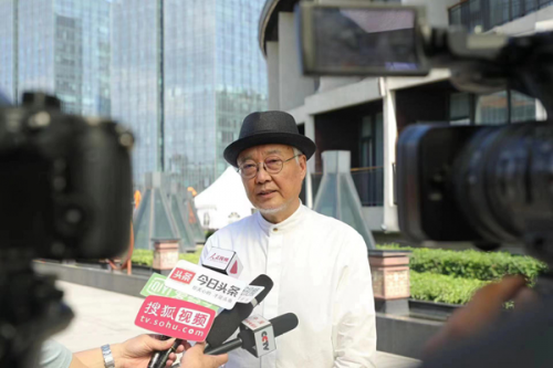 中國(guó)工筆畫學(xué)會(huì)會(huì)長(zhǎng)陳孟昕先生啟動(dòng)儀式后接受記者采訪