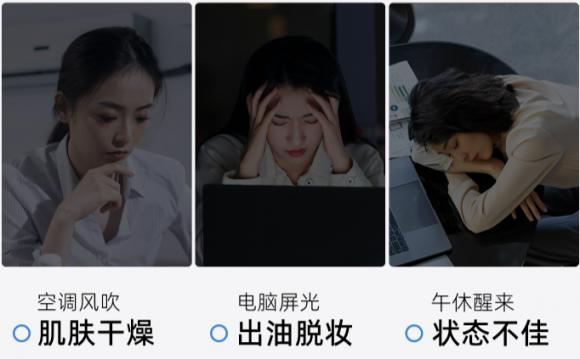 早晨精致小仙女,中午略顯暗沉打工人,下班斑駁卡粉糙GIRL,只想趕快回家卸妝敷面膜,這是多少職場女生每天都在經歷的事情。