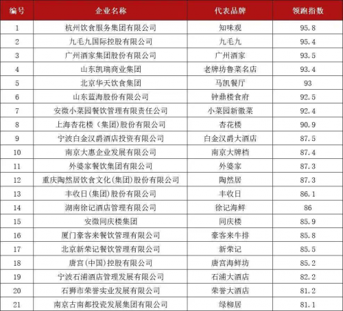 2021-2022年50家“正餐領(lǐng)跑企業(yè)”排名第14位