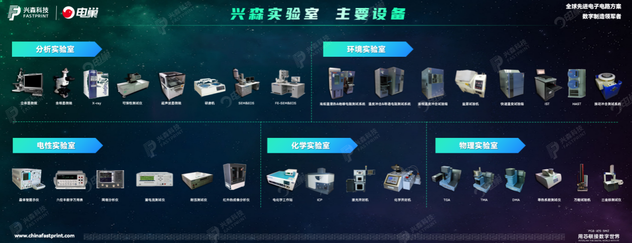 興森科技旗下的興森實(shí)驗(yàn)室成立于2010年,擁有各類檢測試驗(yàn)設(shè)備100多臺,可開展電路板檢測分析、電子元器件檢測分析、可靠性試驗(yàn)。