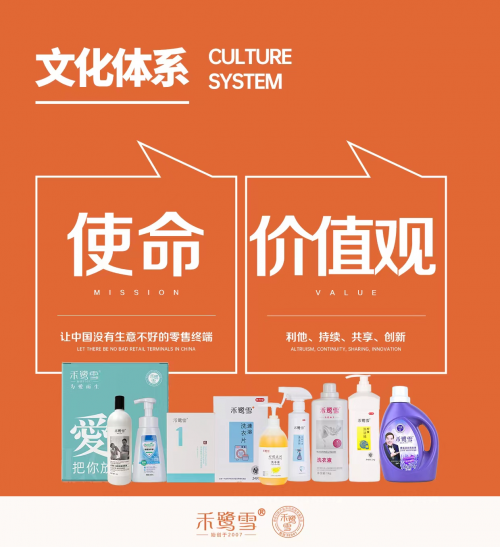 禾鷺雪的愿景是以渠道、用戶為中心,創(chuàng)造更美好的商業(yè)新世界,讓人們的生活更美好。在這個(gè)愿景的引領(lǐng)下,禾鷺雪品牌致力于為用戶提供健康環(huán)保的日化清潔產(chǎn)品,致力于賦能三千萬終端,服務(wù)中國一億家庭,讓他們?cè)诩揖由钪邢硎艿礁嗟男腋8泻褪孢m度。