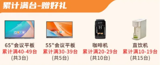 累計(jì)滿40-49臺(tái)贈(zèng)65"會(huì)議平板(共3臺(tái))
