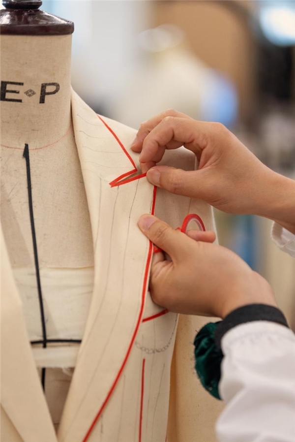 制版師在精細(xì)調(diào)整女裝外套版型