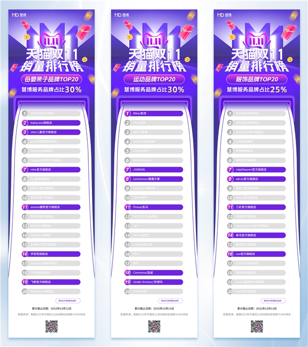此外,從天貓所揭示的”2023雙11全行業(yè)類目TOP10排名戰(zhàn)報(bào)“看,慧博客戶所服務(wù)客戶在今年雙11的整體表現(xiàn)依舊亮眼。