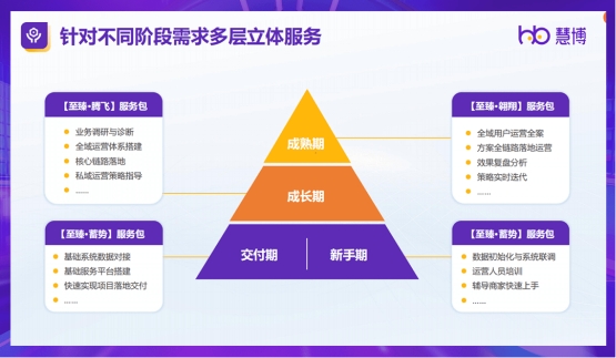 【慧博至臻】更基于客戶的多樣需求提供針對(duì)性的服務(wù),可以根據(jù)企業(yè)的數(shù)字化運(yùn)營(yíng)不同階段的需求提供多層級(jí)的服務(wù),無論你的品牌處在新手期、成長(zhǎng)期、還是成熟期,