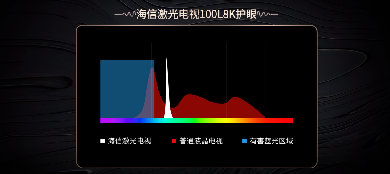 在這個(gè)離不開電子設(shè)備的時(shí)代,護(hù)眼已經(jīng)成為全民關(guān)注的熱點(diǎn)話題。海信100英寸激光電視L8K采用純凈激光光源,避開有害藍(lán)光傷害最大的435-445nm波段,從源頭解決用戶最擔(dān)心的有害藍(lán)光問題。
