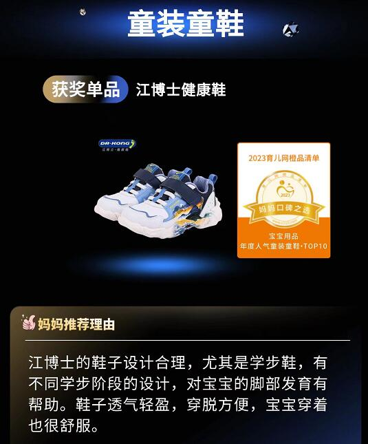 近日,2023年度育兒網(wǎng)橙品清單媽媽口碑之選榜單出爐,江博士學(xué)步鞋再次入選童裝童鞋榜單前十。作為母嬰行業(yè)首個奉行“無水 軍、無干預(yù)、真實用戶、真實口碑”的年度母嬰產(chǎn)品評選,育兒網(wǎng)橙品清單歷經(jīng)多年的驗證,已逐漸成為萬千媽媽的好物標桿。而江博士學(xué)步鞋連續(xù)多年入選,這無疑代表其實力得到了專家與媽媽們的權(quán) 威認證。