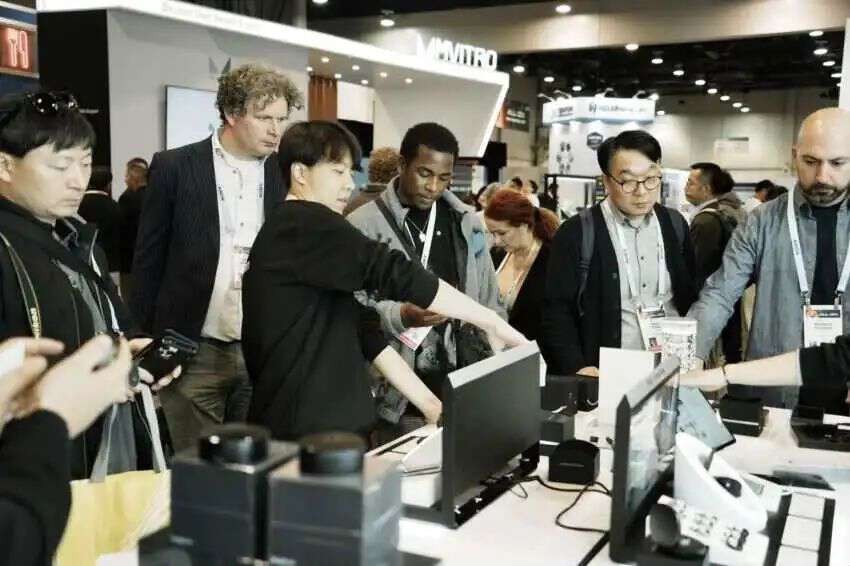 在現(xiàn)場(chǎng),許多參展人員在 RingConn展位前紛紛排隊(duì)體驗(yàn)產(chǎn)品,他們拿起不同顏色和尺寸的 RingConn智能戒指進(jìn)行試用體驗(yàn),并表示這是他們首次接觸和了解智能戒指產(chǎn)品,RingConn的科技感讓人感到印象深刻。