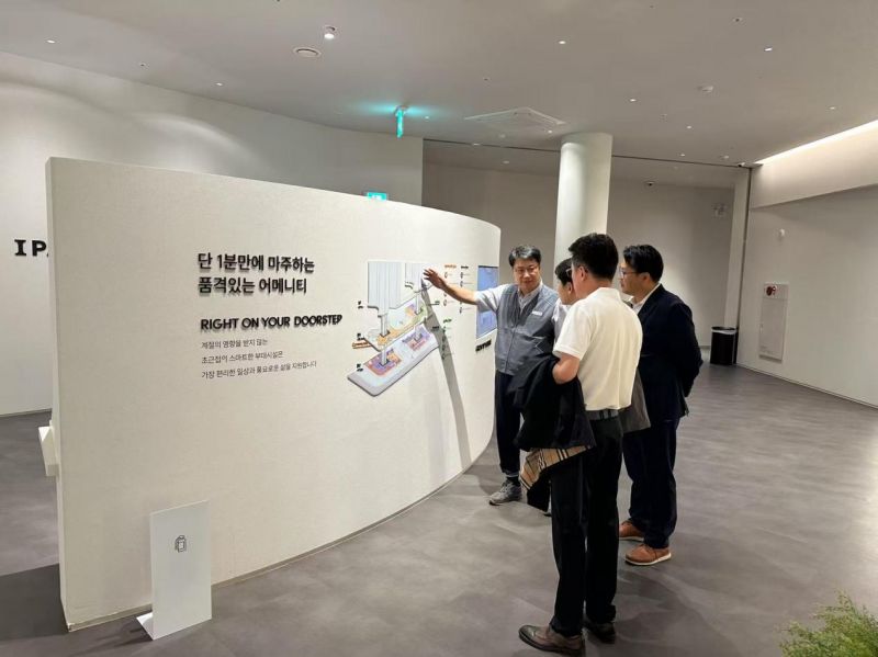 會議結(jié)束后,中方代表團(tuán)一行訪問了韓國現(xiàn)代地產(chǎn)在建項(xiàng)目,并參觀了項(xiàng)目展廳。在實(shí)地考察過程中,雙方進(jìn)一步交流了項(xiàng)目建設(shè)經(jīng)驗(yàn)與建材應(yīng)用實(shí)踐,為后續(xù)合作奠定了更堅(jiān)實(shí)的基礎(chǔ)。