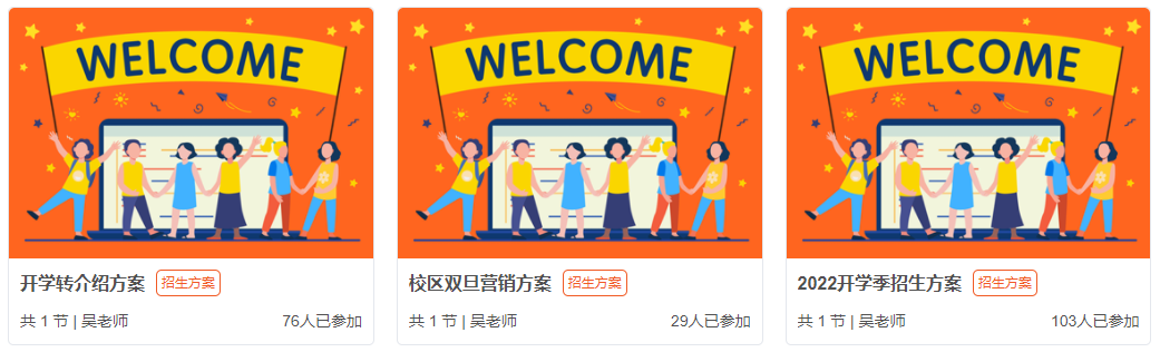 以及校區(qū)招生方案、短期課推廣、顧問培訓等運營相關課程,客戶不用擔心面臨機構(gòu)招生、課程宣傳、客戶談單等疑難問題!