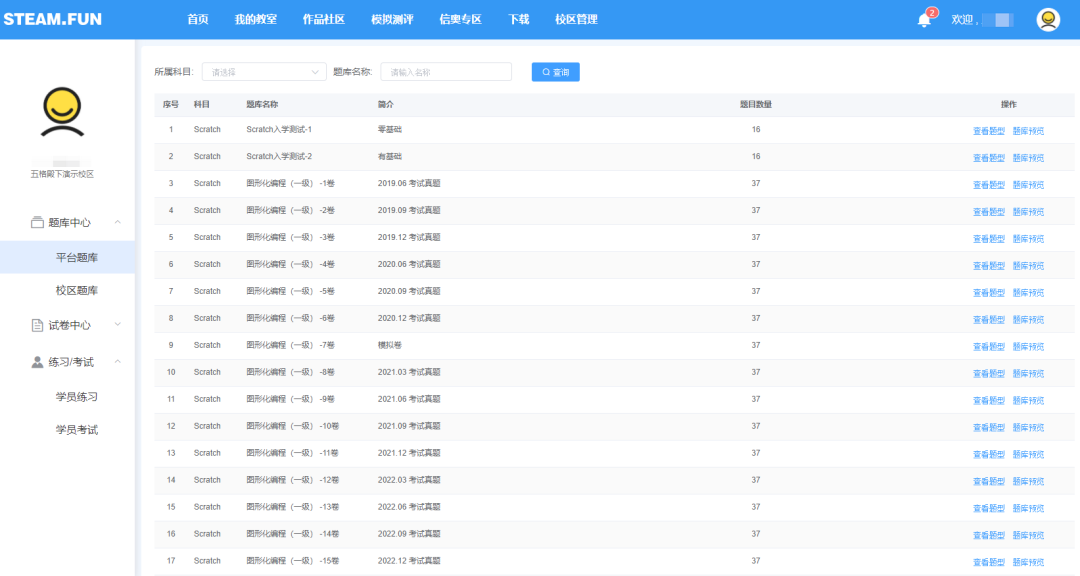 在平臺上,五格殿下有編程考級海量題庫,而且會定期更新新考級題目,便于機構(gòu)學員在考試前能多刷高質(zhì)量習題!