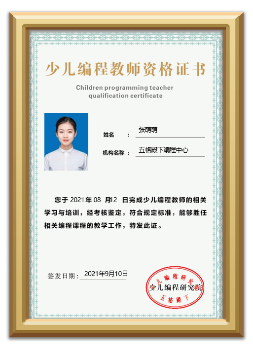 最后參加五格殿下的結(jié)業(yè)測評考核,考核合格,會獲得由五格殿下頒發(fā)的編程資格證書。