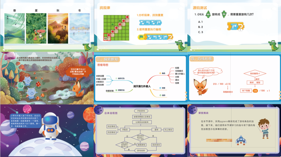 選擇五格的課程,不僅提供給孩子良好的課程體驗,也會幫助老師輕松備課!五格殿下會為合作校區(qū)提供備授課6件套,包含教學課件、備課教案、程序模板、師訓視頻、學生講義、課后海報,讓老師備課放心,上課舒心,課后省心。