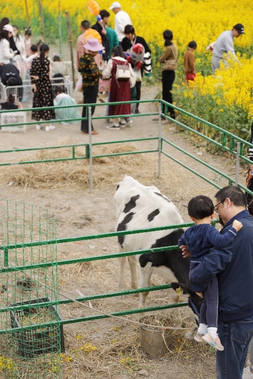 演繹聲從花海中款款而來,演繹人員在花間,進行才藝展示。100余畝油菜花田間,舞龍、古箏演繹、折子戲表演、農副產品展示等活動一個接一個精彩上演,笑聲、掌聲、歡呼聲匯成一片歡樂的海洋。豐富的活動內容,使得稅務場村油菜花節(jié)迅速火出圈。100余畝層層疊疊的油菜花爭相競放,蔚然成海,吸引不少游客前來賞花踏春,描繪出一幅農村美、農民興、農業(yè)富的鄉(xiāng)村振興美好圖景。