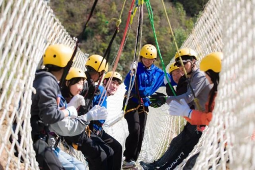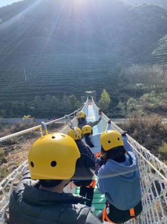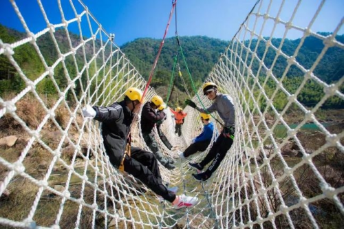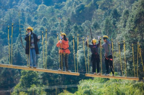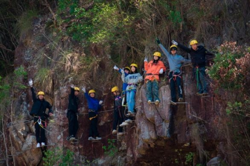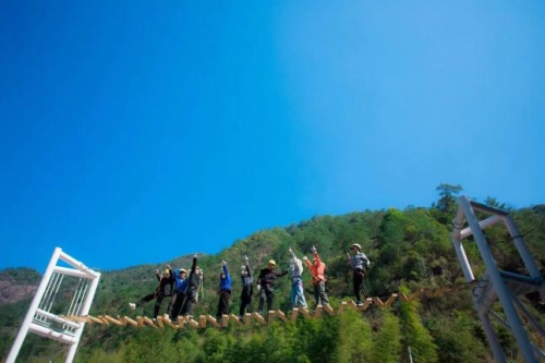 本次活動中的大下姜旅游線路考察串聯(lián)大下姜多個景點,挖掘鄉(xiāng)村發(fā)展的巨大潛力。從下姜村往山谷延伸,緣界集團利用天然的峽谷溪流,以戶外探索的方式,利用一系列崖壁上的飛拉達探險和貫穿峽谷的空中繩索探險設(shè)施,讓游客通過不同的角度去欣賞峽谷中美麗的自然風(fēng)光,感受大自然的鬼斧神工,還能感受天塹飛度的革命探索精神。