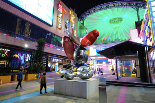 公共藝術(shù)作品的落地,為華熙LIVE·528商圈增添了濃厚的藝術(shù)魅力,吸引絡(luò)繹不絕的年輕人前來打卡,人們在此相聚交流、情感共振,在成都體驗(yàn)真實(shí)的人間煙火氣。同時,藝術(shù)作品的公共性得以彰顯,在手機(jī)和相機(jī)屏幕的一閃一滅間,它又一次突破時間與空間的限制,藝術(shù)大道儼然成為成都的新文化地標(biāo)。