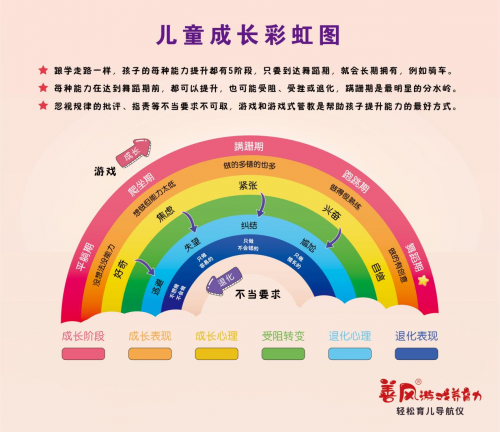 針對孩子成長階段的多種表現(xiàn)和心理變化進行具體分析,孩子表現(xiàn)不好(不會做、做錯了、做不好)是成長過程的正?,F(xiàn)象,要適當接納這些現(xiàn)象,不是孩子不好,只是能力不夠,練習不夠,游戲教育讓孩子在游戲中練習和成長,通過多次練習和體驗,使孩子掌握各種能力。父母也是如此,利用游戲可以幫助孩子和家長一起改正、共同提升。