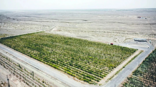 1986年,阿克蘇地區(qū)啟動了柯柯牙荒漠綠化工程,在近40年里,一代又一代阿克蘇人在荒灘戈壁上建成了南北長25公里、東西寬4公里集生態(tài)林、經(jīng)濟林、防風(fēng)林于一體的防風(fēng)治沙“綠色長城”,使阿克蘇的沙塵天氣從每年100天左右減少至20天左右,昔日的“風(fēng)沙策源地”變成“綠色聚寶盆”,孕育著勃勃生機與希望。