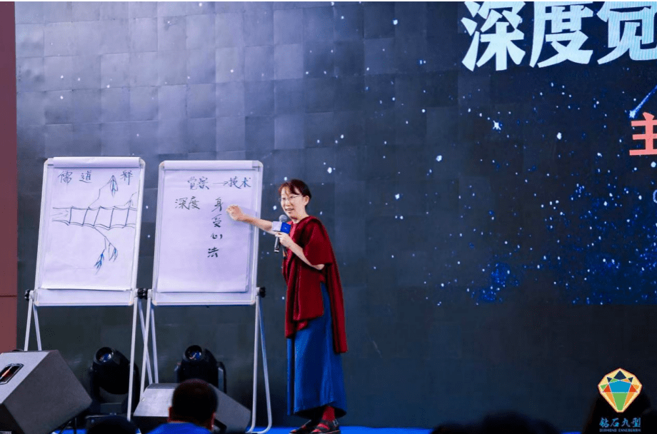 接下來是李帥老師的分享,她的演講主題是《深度覺察與人生智慧》,她非常有趣味的在白板上畫了一節(jié)竹子,說道: