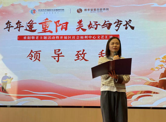 善孝堂養(yǎng)老副總經(jīng)理周蓉發(fā)表致辭,表示尊老、敬老、愛(ài)老、養(yǎng)老是中華民族的傳統(tǒng)美德,源遠(yuǎn)流長(zhǎng),開(kāi)福區(qū)社會(huì)福利中心作為開(kāi)福區(qū)公建民營(yíng)普惠養(yǎng)老機(jī)構(gòu),承載著民生福祉,我們將時(shí)刻把老年人的衣食冷暖放在心上、抓在手上,為老年人提供更優(yōu)質(zhì)更貼心的服務(wù),滿(mǎn)足老年人多元化、個(gè)性化的晚年生活需求。