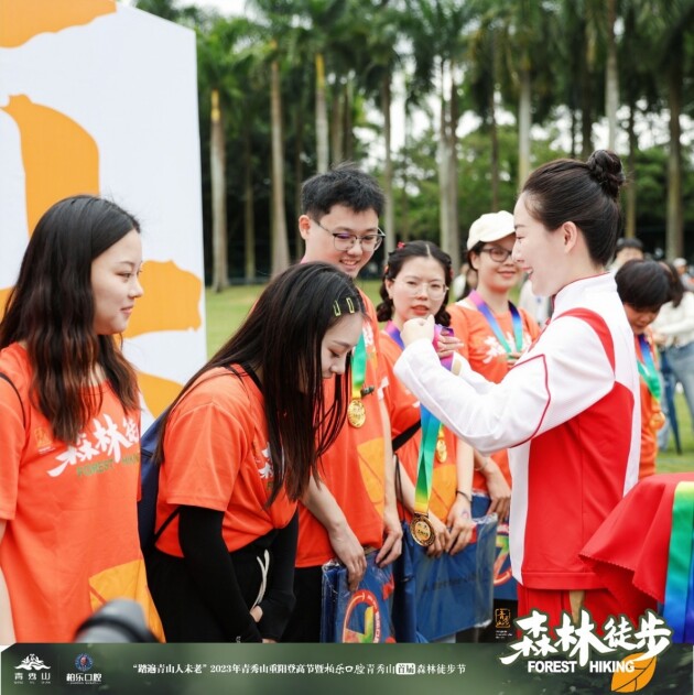 在終點處,黃晉萱女士給完成6KM的徒步愛好者們,親自頒發(fā)榮譽紀(jì)念獎牌,每個人臉上都洋溢著開心滿足的笑容,收獲了一次難以忘記的深刻回憶。共同感受這一刻的榮譽與自豪,留下這次森林徒步的高光時刻。