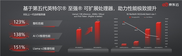 京東大模型第 一次亮相就收獲完美成績,很大程度上要?dú)w功于其部署的基于第五代英特爾? 至強(qiáng)? 可擴(kuò)展處理器的新一代自研服務(wù)器,與上一代自研服務(wù)器相比整機(jī)性能提升23%,關(guān)鍵的AI CV推理性能與 Llama v2大模型推理性能更是分別提升38%與51%。