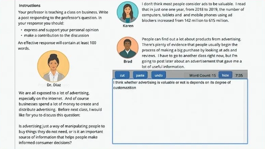 最后再來看看寫作部分。托福的“獨(dú)立寫作”部分在改革后變成了“學(xué)術(shù)討論寫作”,要求考生針對指定話題闡述觀點(diǎn)并提供論據(jù),該有的學(xué)術(shù)能力依舊不可缺少。同時(shí),這一部分還會(huì)涉及聽力和閱讀能力考查,對考生的綜合能力要求較高。相較之下,雅思略容易一些,只要抓住題干信息,觀點(diǎn)明確不跑題,基本上不會(huì)出現(xiàn)大問題。