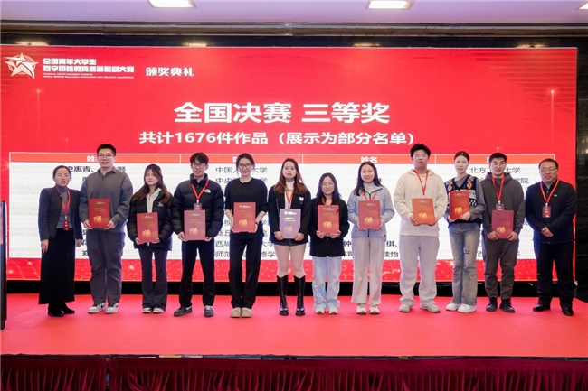 頒獎環(huán)節(jié)分四個篇章隆重進(jìn)行。國防大學(xué)教授韓旭東、中國信息協(xié)會會員部主任張鳳英為獲得三等獎的選手頒獎,他們寄語獲獎?wù)咭^續(xù)保持進(jìn)取精神,在創(chuàng)新道路上砥礪前行。