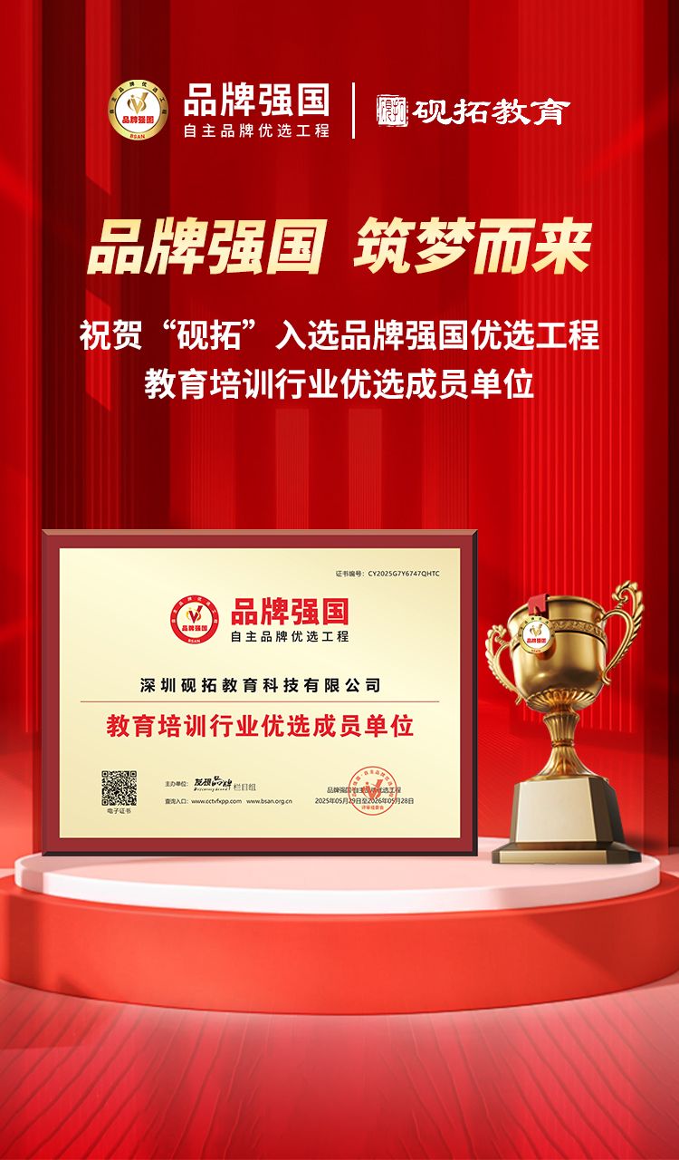 在全球化與數(shù)字化浪潮的驅動下,品牌競爭突破了地域和行業(yè)的限制。企業(yè)的品牌價值不僅是綜合實力的象征,更是市場影響力的體現(xiàn)。當深圳硯拓教育科技有限公司入選品牌強國優(yōu)選工程教育培訓行業(yè)成員單位時,既是這家深圳企業(yè)的榮光時刻,更是全社會對其在職業(yè)教育現(xiàn)代化進程中所做出努力和貢獻的肯定。