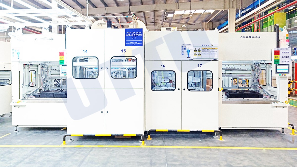 伴隨著新能源汽車產(chǎn)業(yè)的迅速發(fā)展,多年來友通塑焊在汽車內(nèi)外飾超聲波焊接、熱鉚/熱風(fēng)焊接、熱板/紅外焊接、以及汽車保險杠門板開孔和焊接、新能源汽車輔助油箱無塵打孔/特種焊接、多工藝混合型開孔/焊接柔性通用型單機及綜合流水線設(shè)備、機器人輔助設(shè)備領(lǐng)域積累了豐富的研發(fā)和實踐經(jīng)驗。自主研發(fā)通用型標(biāo)準(zhǔn)化熱鉚/熱風(fēng)焊接/超聲波焊接多功能、多工位、雙層交替工作臺、機器人運行、一鍵換模等先進技術(shù),解決了汽車、家電等行業(yè)設(shè)備投入大、改型生產(chǎn)時原有設(shè)備難于重復(fù)利用等難題。2016年開始研發(fā)熱風(fēng)焊接工藝并成功介入產(chǎn)品量產(chǎn),目前已量產(chǎn)的熱鉚/熱風(fēng)焊接設(shè)備具備“柔性化、自動化、智能化”等優(yōu)點?,F(xiàn)已量產(chǎn)的產(chǎn)品有各類自動換模熱板/紅外焊接設(shè)備、各類自動換模熱鉚/熱風(fēng)焊接雙工能設(shè)備、各類自動換模超聲波焊接設(shè)備、各類自動換模門板儀表板機器人超聲波焊接設(shè)備、自動換模門板熱鉚/熱風(fēng)焊接/超聲波焊接混合型快捷流水線一體機、各類自動換模保險杠油箱開孔/焊接流水線設(shè)備等,暢銷國內(nèi)外多個國家地區(qū),在汽車配件生產(chǎn)領(lǐng)域獲得諸多知名領(lǐng) 軍企業(yè)好評。