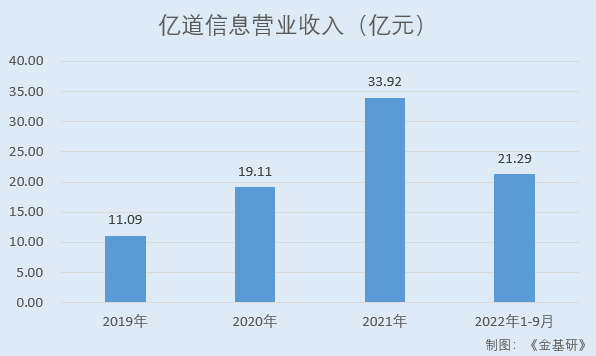 據招股書,2019-2021年及2022年1-9月,億道信息實現營業(yè)收入分別為11.09億元、19.11億元、33.92億元、21.29億元。