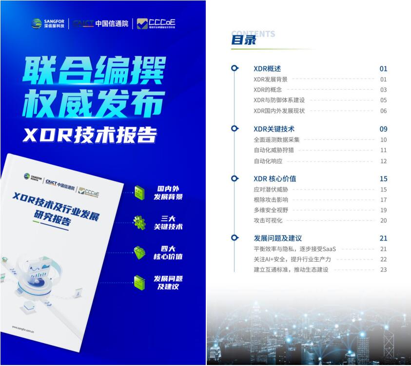早在去年,深信服聯(lián)合信通院深入解析XDR相關(guān)技術(shù),并在本次大會(huì)正式推出《XDR技術(shù)及行業(yè)發(fā)展研究報(bào)告》。