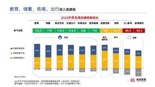 雖然我們十分關(guān)注食品飲料行業(yè),但在數(shù)據(jù)中,我們也看到,教育這個(gè)層面上居民花費(fèi)意愿越來(lái)越高,這也和目前的投 資動(dòng)向一致。