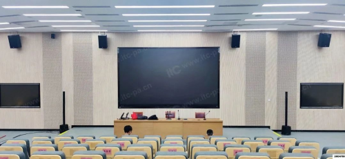 為解決上述問題,itc通過計算報告廳的音響場地系數(shù)進(jìn)行設(shè)計,將4只350W輔助音箱、2只400W落地組合式音箱合理分布于報告廳場所,降低聲反饋概率,提高傳聲增益,解決嘯叫難題,保證報告廳每個角落的聲場聽覺均勻,具備良好的指向性控制,打造出卓越的擴(kuò)聲體驗。