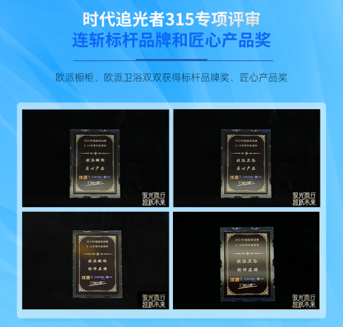 在推進自身高品質(zhì)發(fā)展,歐派躋身為我國整體櫥柜行業(yè)的領(lǐng)先品牌,廣受業(yè)內(nèi)和消費者認可。在今年的315國際消費維 權(quán)日,歐派櫥柜、歐派衛(wèi)浴更是以專業(yè)的、高品質(zhì)的潮流櫥柜,獲得了“2023年度家居五星服務(wù)門店獎”“2023年度家居行業(yè)服務(wù)榜樣”獎項。與此同時,歐派櫥柜、歐派衛(wèi)浴還雙雙獲得了2023中國家居消費“2023時代追光者·315匠心產(chǎn)品獎”、“時代追光者·315標桿品牌獎”榮譽獎杯。歐派能夠獲得這樣的榮譽是實至名歸的,這都得益于它成熟的服務(wù)體系和較高的產(chǎn)品質(zhì)量,讓消費者“買得放心、用得安心”。